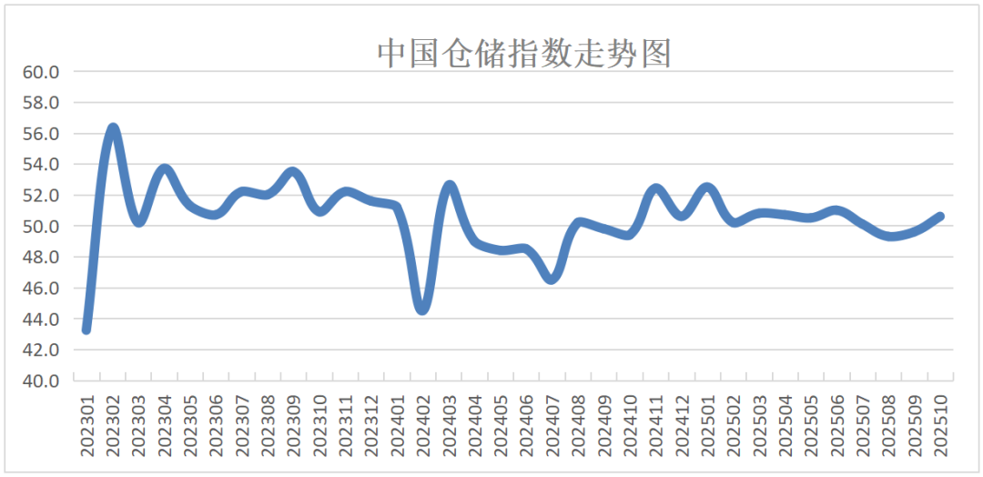 中国物流与采购联合会和中储发展股份有限公司联合调查的中国仓储指数,2025年10月份为50.6%,较上月回升1个百分点,重回50%以上的扩张区间,业务量增加,设施利用率提高,周转效率加快,库存降幅收窄,行业活跃度有所提升,企业补库意愿略有增强,对后市的预期稳中向好。具体来看实盘配资官网,本月指数呈现以下特征: